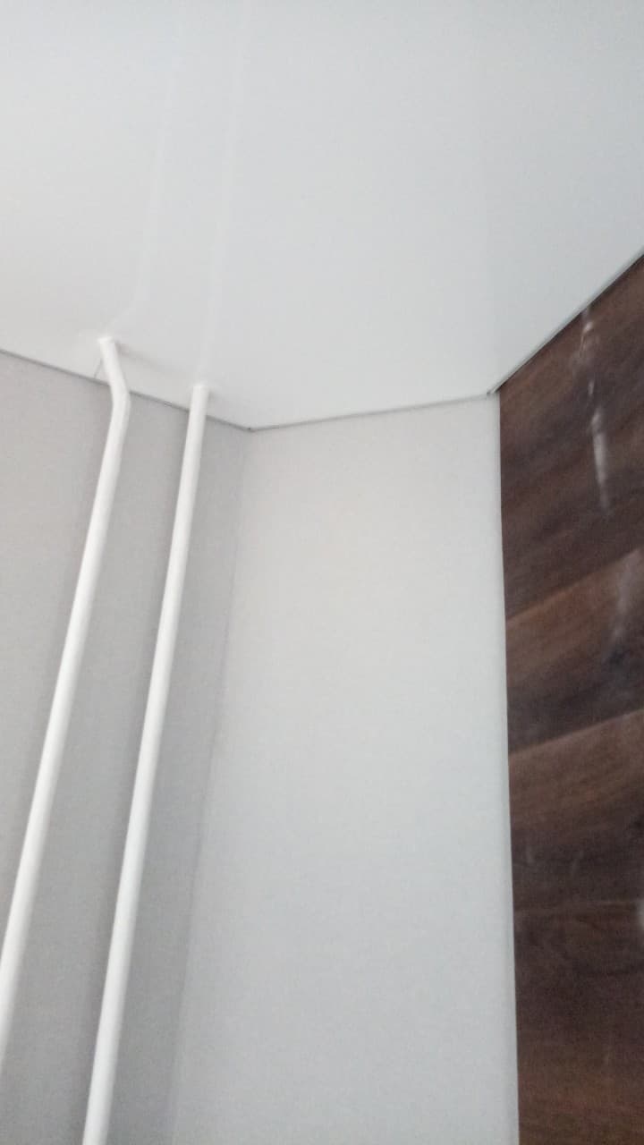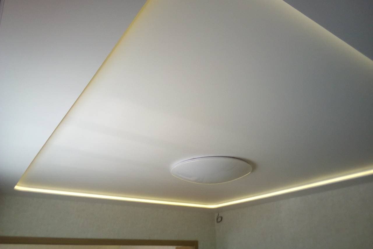 Установили контурную линию по периметру помещения. Установили сатиновое белое полотно.